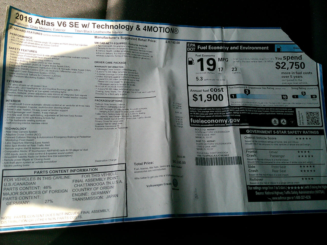 2018 Volkswagen Atlas 3.6L V6 SE w/Technology 4MOTION